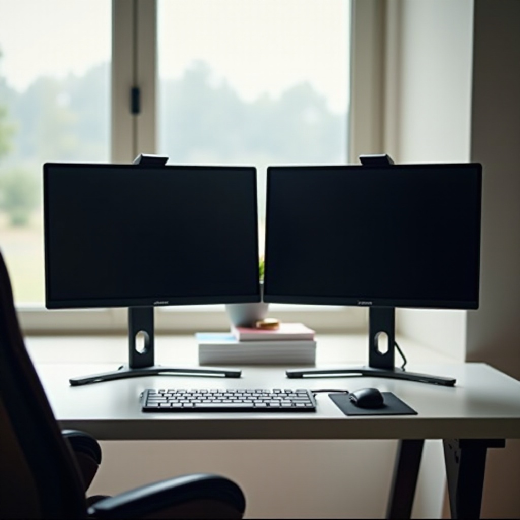 物理的なポジショニングと整列: モニターを目から等距離に配置し、主要なモニターを正面に、2つ目を角度を付けて配置して、疲れを軽減します。