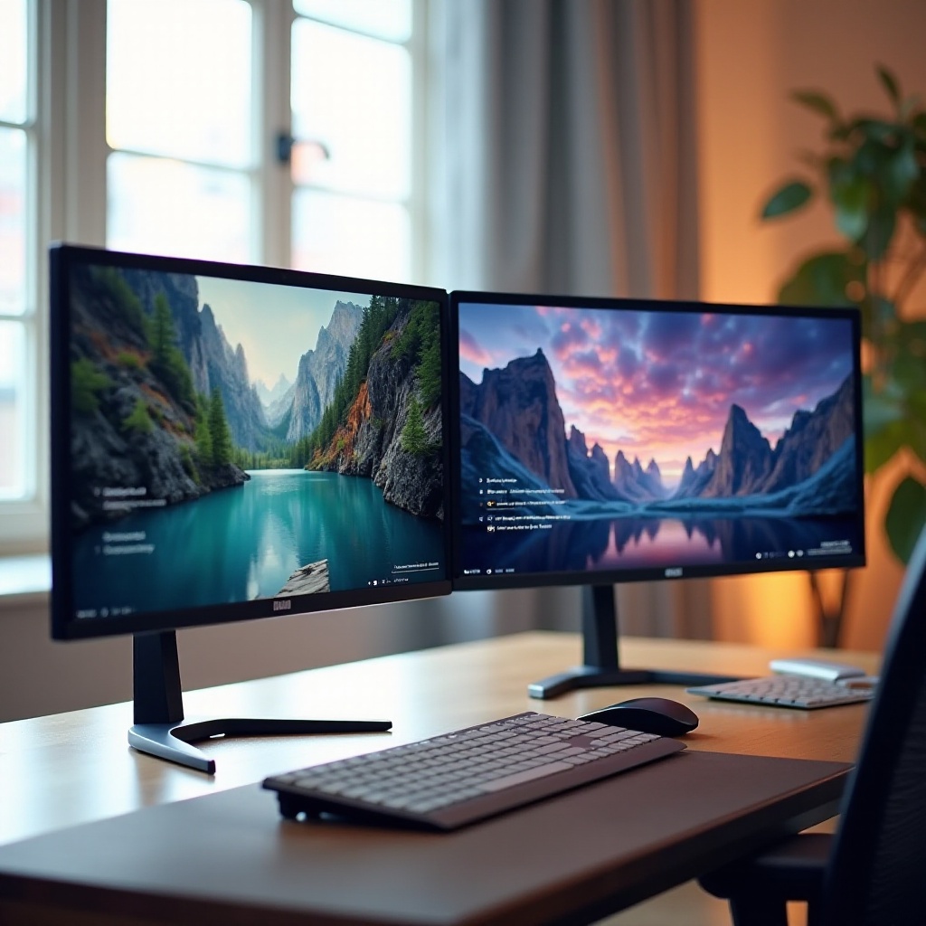 Pozycjonowanie fizyczne i wyrównanie: Umieść monitory w równych odległościach od oczu, aby zmniejszyć obciążenie, upewniając się, że główny monitor znajduje się bezpośrednio przed Tobą, a drugi pod kątem.